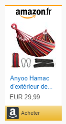 Dans un camping nous avions vu des gens avec un hamac décathlon. Ça avait l’air très sympa, mais nous en voulions un plus coloré. Celui que nous avons trouvé nous parait plus joli et de très bonne qualité, pour quasiment le même prix. Nous allons pouvoir nous prélasser entre 2 arbres. Il peux également servir de nappe pour pique-niquer par terre.