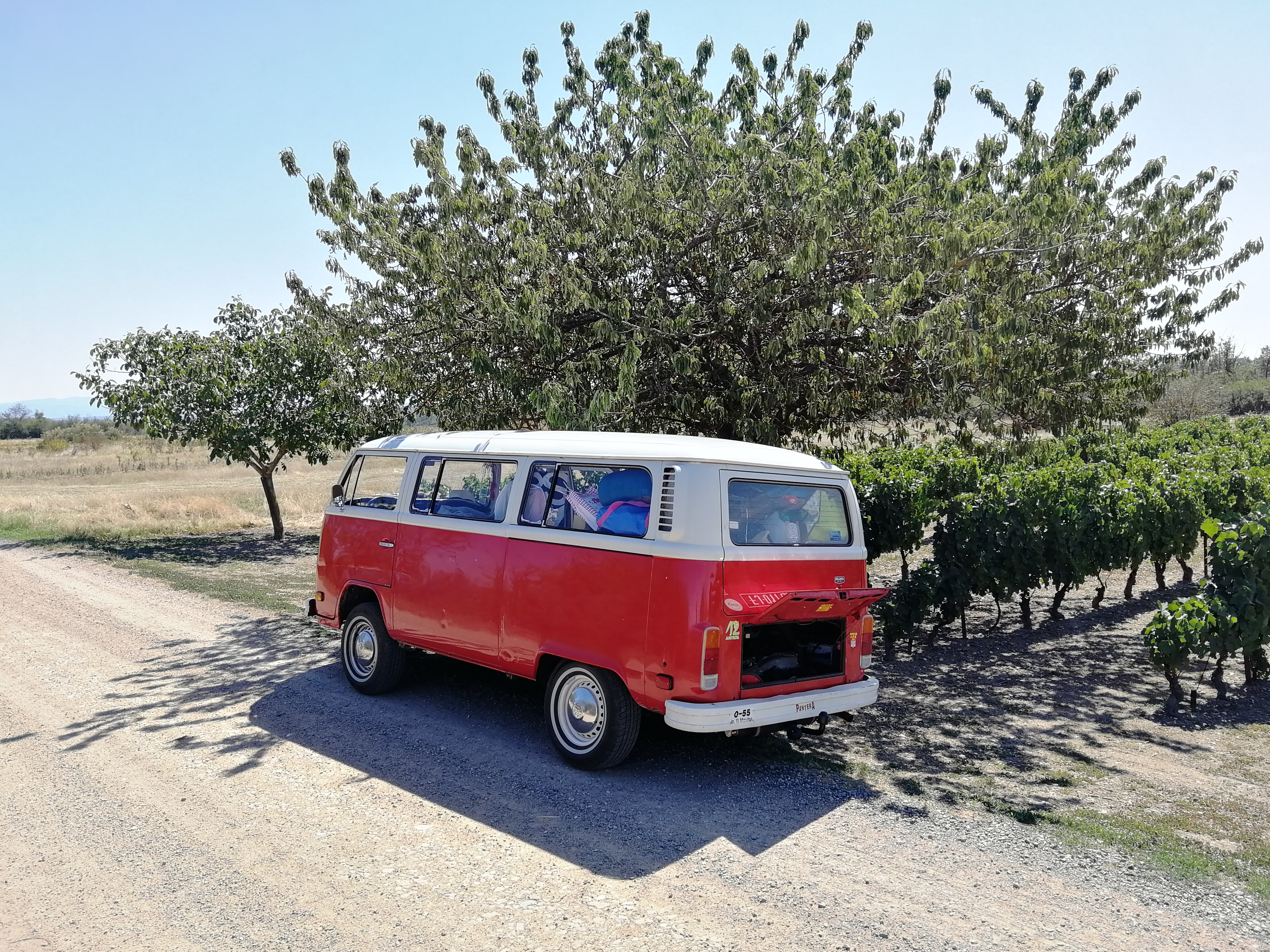 Ça y est c’est enfin les vacances! Depuis le temps qu’on les attendait. J’ai fini le travail à 13h, nous ne perdons pas de temps, et partons directement. Pendant que je travaillais, Doudou rempli le combi. Nous sommes bien chargés, heureusement que nous n’avons pas une troisième personne ou un bébé sinon je ne sais pas où nous l’aurions mis…