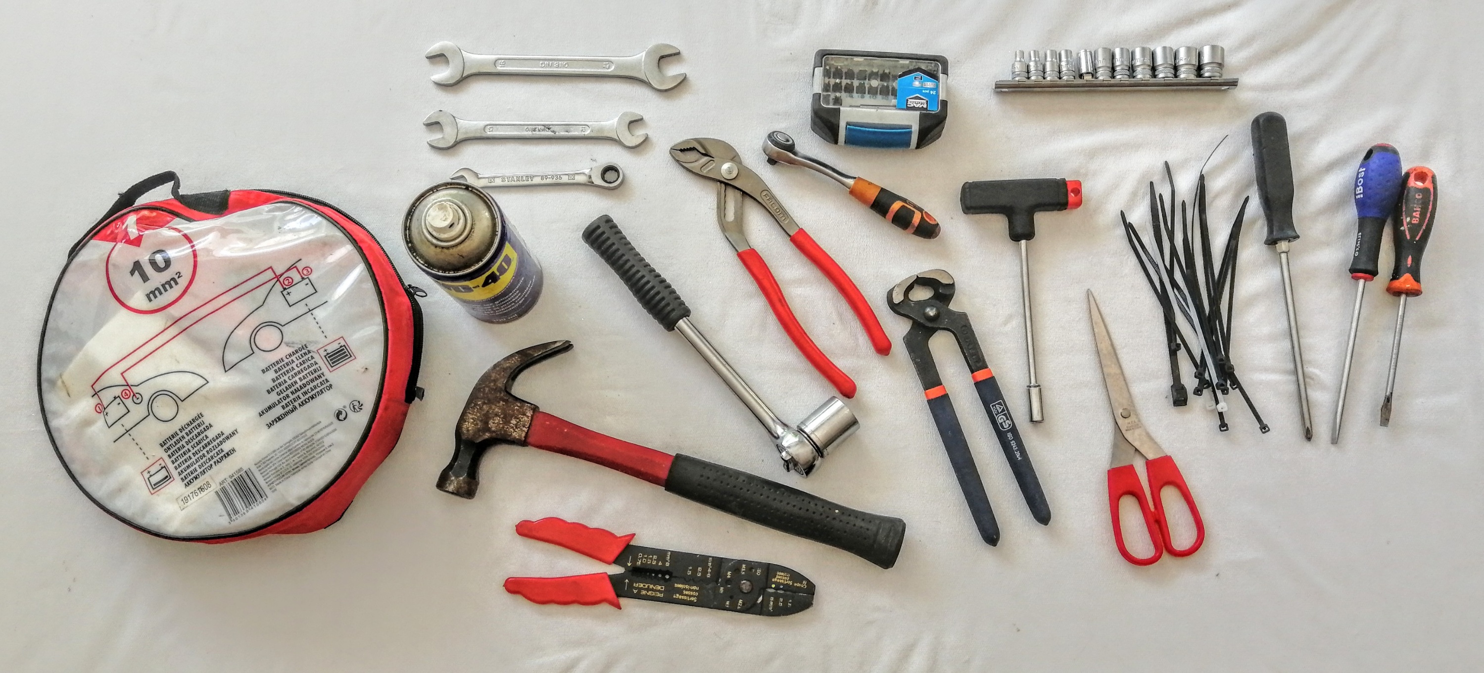 Voici ma liste non exhaustive des outils que nous emportons sur la route: