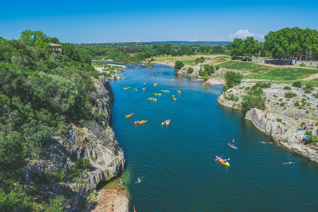 Nous prenons la direction d’un camping proche du pont du Gard, malheureusement il est fermé à cause du COVID. On ne sait pas si il va pouvoir se relever, c’est triste… Du coup nous allons à un camping 4* à côté, de l’autre côté du Gardon . C’est dommage, nous n’aimons pas trop ces grands campings, mais trouvons une place super sympa, au fond en bordure de Gardon.