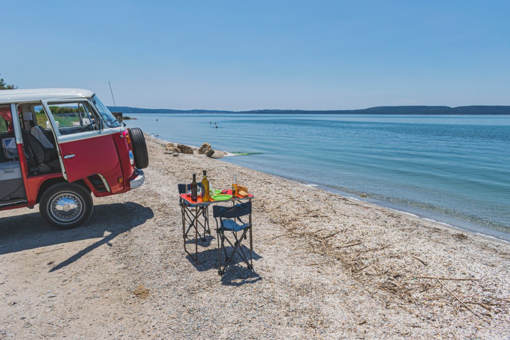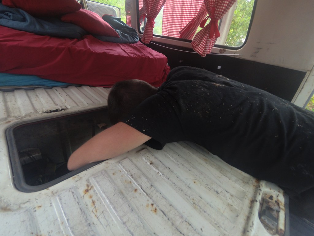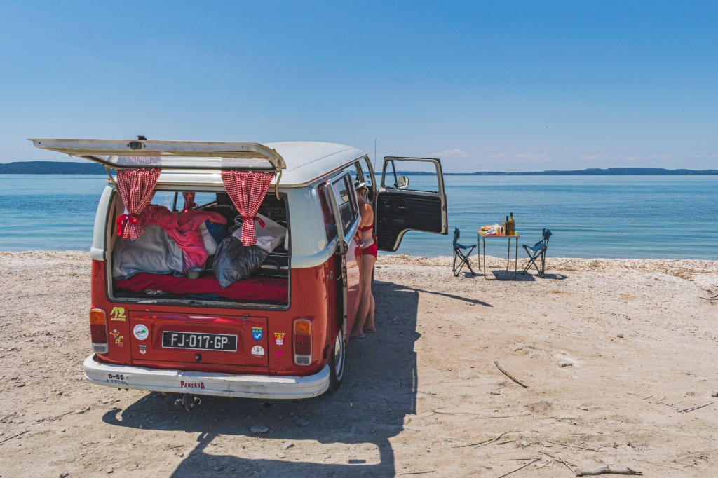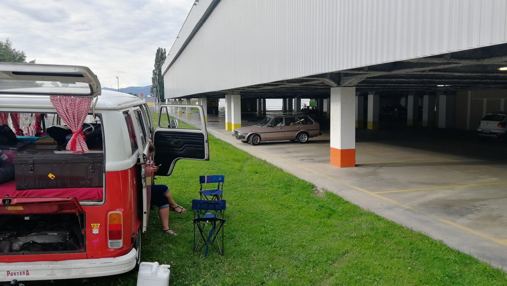 Doudou lance un appel sur Save my VWTrip, qui restera sans réponse. Mais par chance nous avons trouvé un super camping municipal à quelques kilomètres. Après 3km de descente, nous y voilà. Arrivés au camping nous sommes accueillis par la gérante du camping. Très accueillante et arrangeante. Vraiment sympa ce camping, très calme, on y retournera si on revient dans la région! On ne se laisse pas abattre, direction l’apéro après la douche. On verra demain si les vacances continuent avec Chianti ou pas.