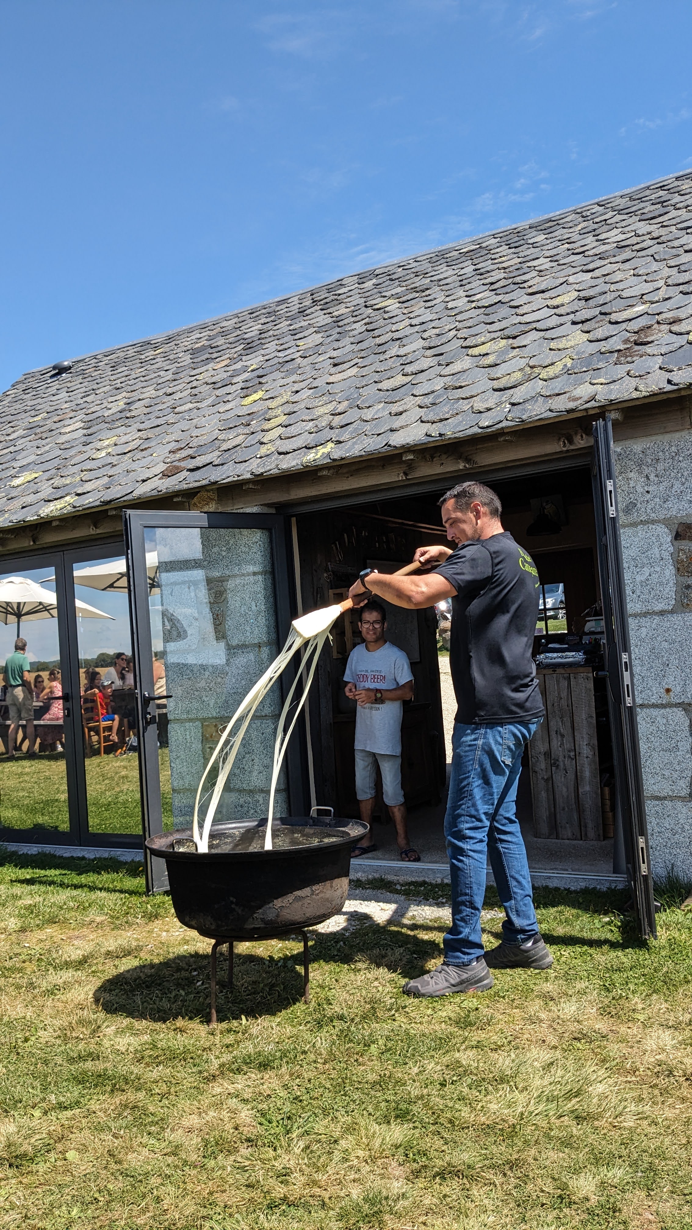 On va se balader sur Laguiole, avec la visite de la coutellerie. Merci à La maison du Laguiole, c’était très intéressant cette visite (qui est gratuite). Ils nous expliquent comment est fabriqué le célèbre couteau de Laguiole . On mange dans un Buron. Repas unique: Charcuterie, aligot saucisse, tarte à la myrtille. C’est délicieux. S’en suit balade digestive sur les plateaux de l’Aubrac pour digérer tout ça.