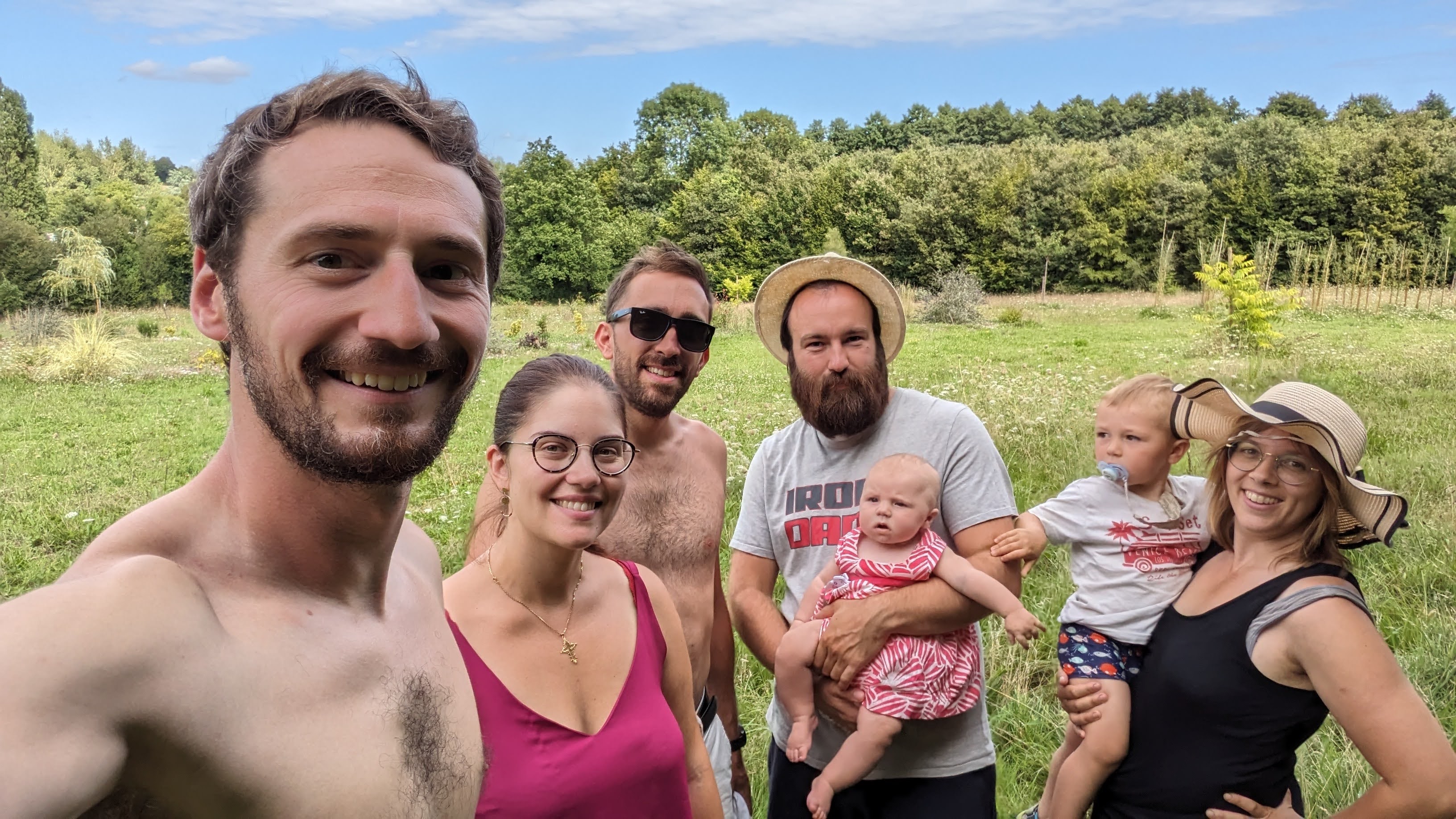 Nous retrouvons nos amis (à l’heure de l’apéro…): Aurélien, Karl , Gwen et leurs enfants Luka et Lily. La petite dernière que nous n’avions pas eu encore la chance de rencontrer ! Elle est trop mignonne ! De vrais beautés ces enfants !