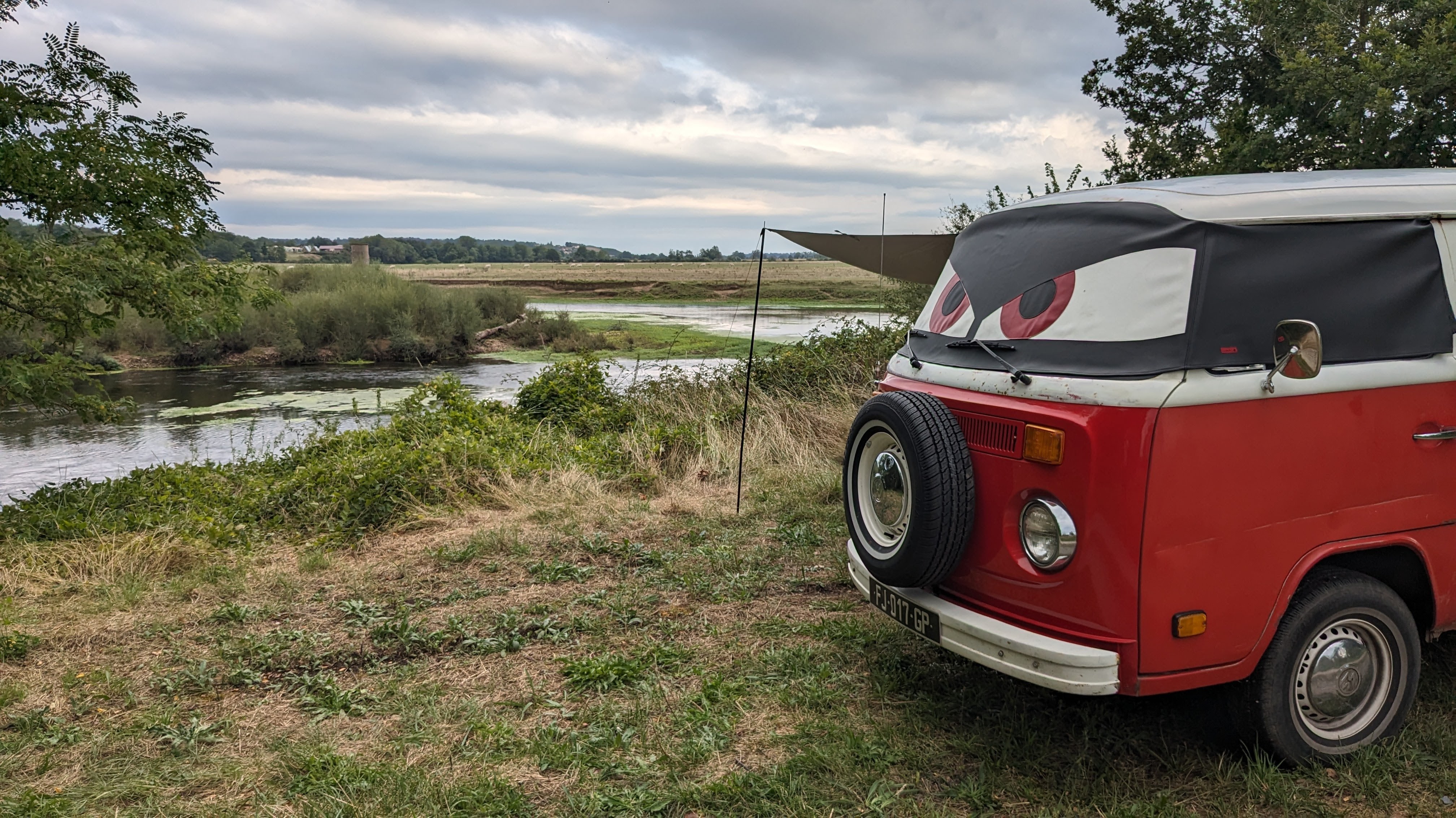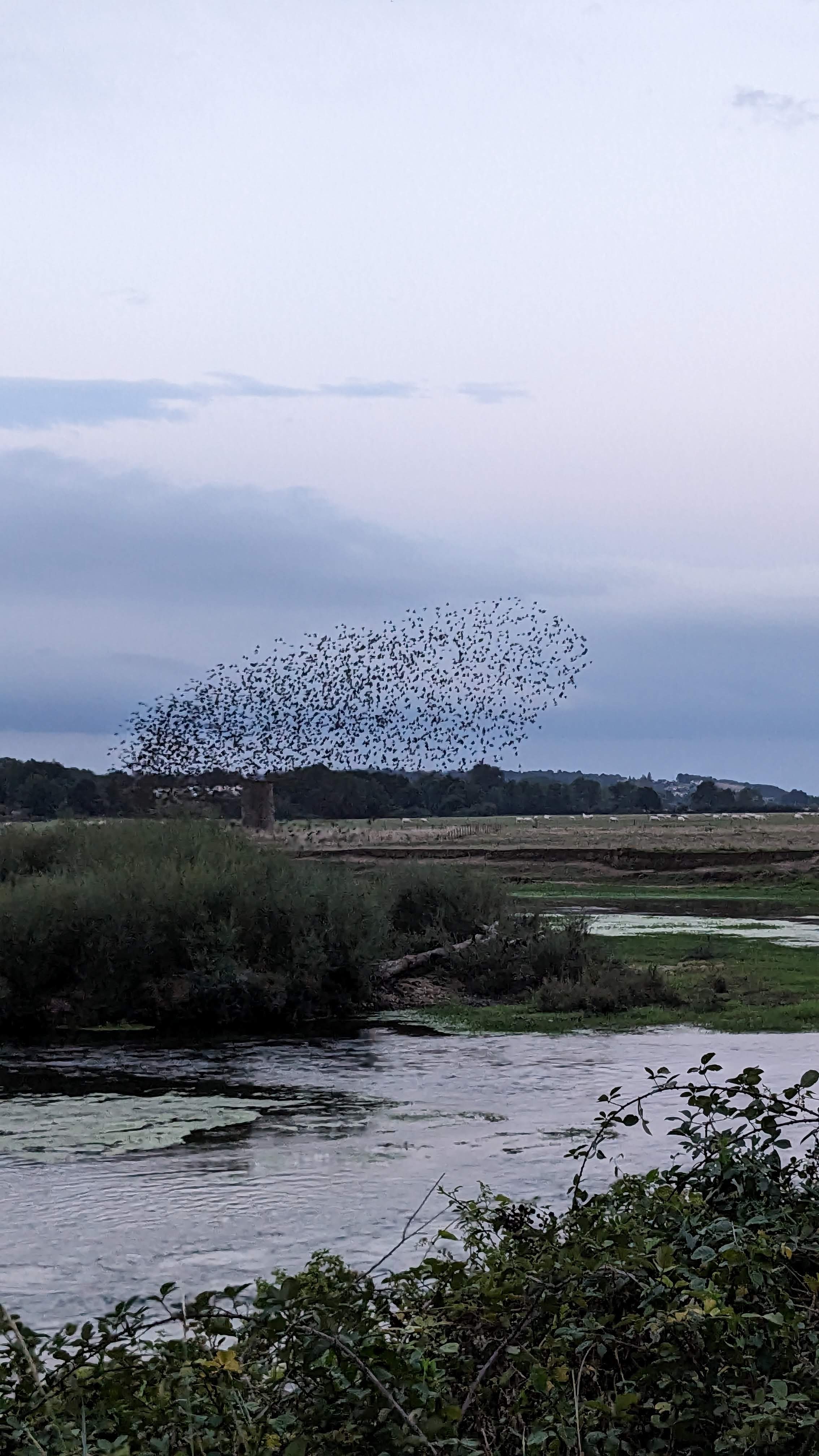 Nous avons fait la course avec l’orage. Nous le laissons passer devant nous après une nuit orageuse au bord de l’Allier, pour profiter des vacances jusqu’au dernier moment. Halte dans la ville de Moulins, puis notre dernière nuit au bord de la Loire. Nous avons eu le droit à une belle chorégraphie d’oiseaux migrateurs.